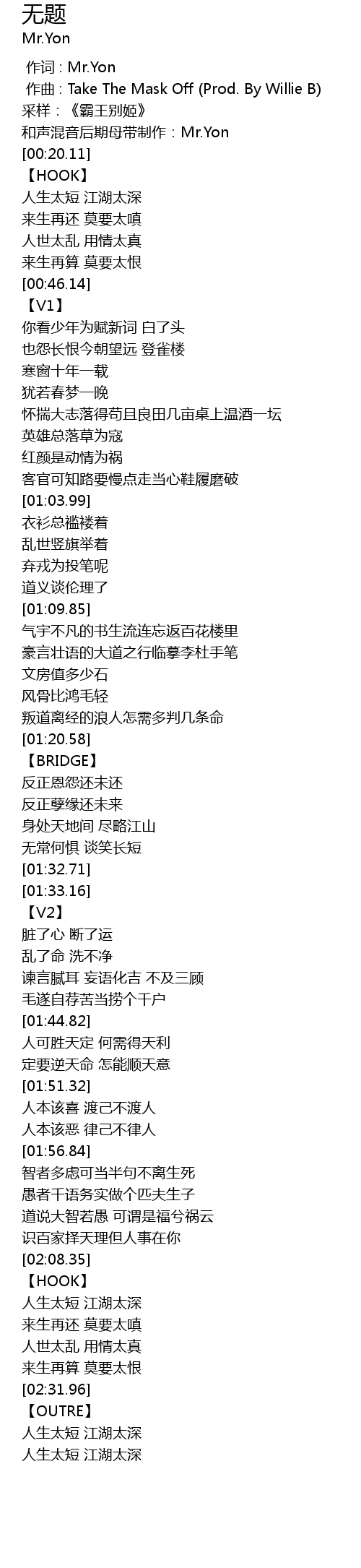 | [00:00.000] | 作词 : Mr.Yon |