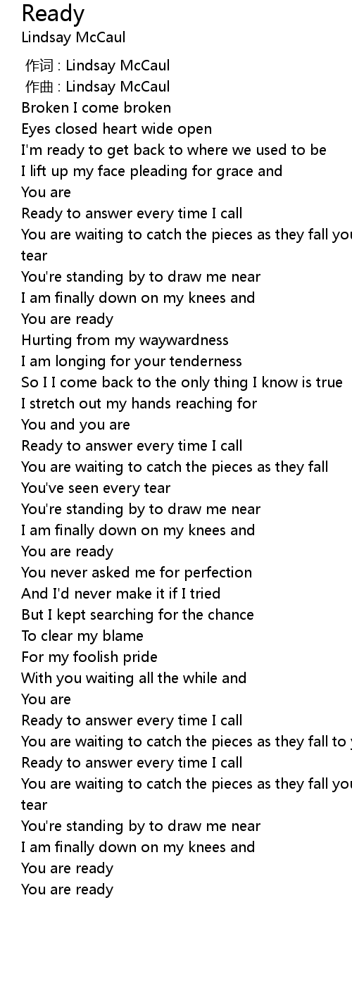 | [00:43.48] | You are waiting to catch the pieces as they fall you've seen every tear |