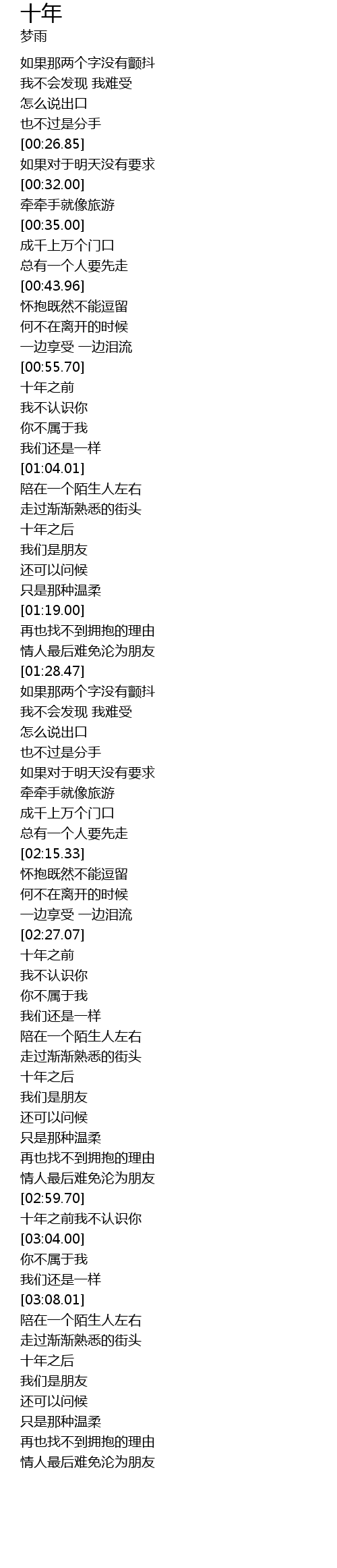 | [03:01.64] | 十年之前我不认识你 |