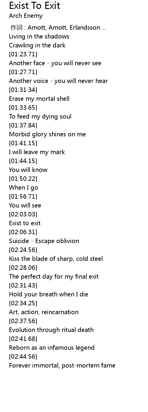 | [00:00.00] | 作词 : Amott, Amott, Erlandsson ... |
