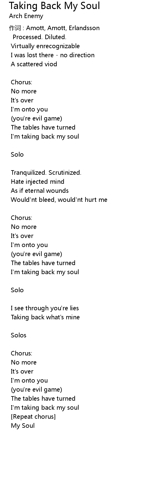 | I' m taking back my soul | |
