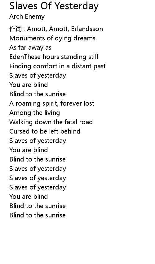 | Song | Slaves Of Yesterday |