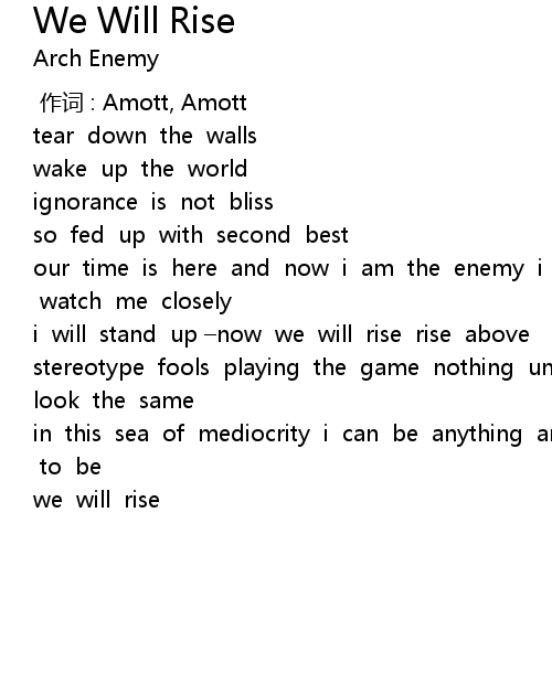 | [00:56.20] | i will stand up –now we will rise rise above |