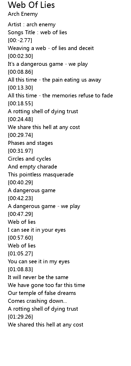 | [00:-1.89] | Weaving a web - of lies and deceit |