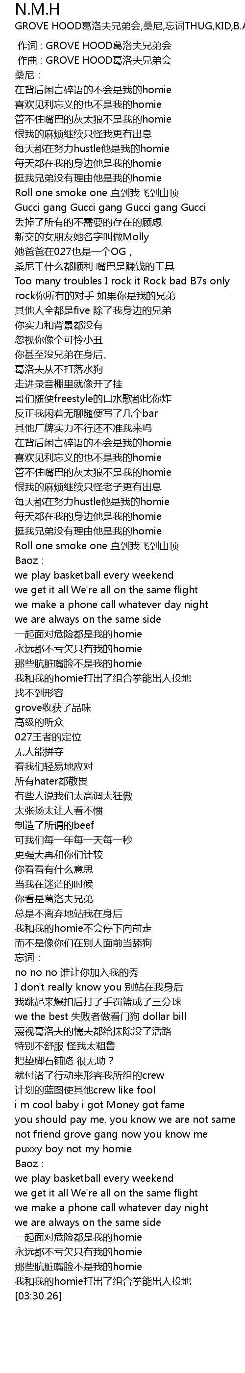 | [02:00.53] | nèi xiē āng zāng zuǐ liǎn bú shì wǒ de homie |
