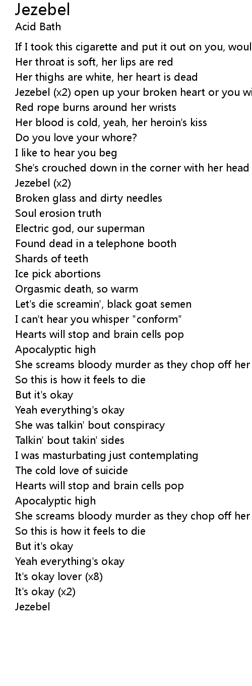 Jezebel (x2) open up your broken heart or you will die tonight |