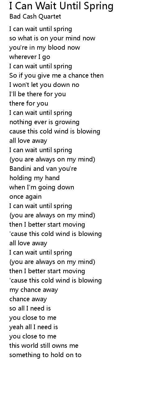 I can wait until spring |