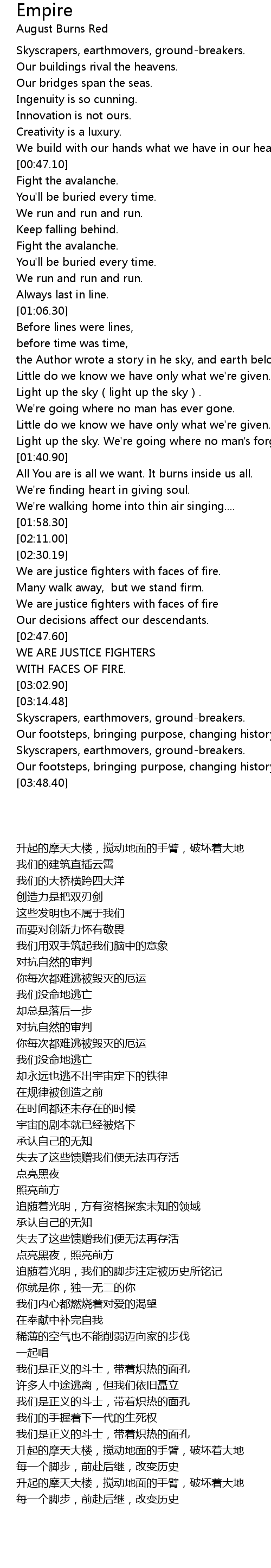 | [03:25.50] | Our footsteps, bringing purpose, changing history. |