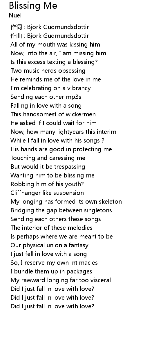 | [02:54.232] | Wanting him to be blissing me |