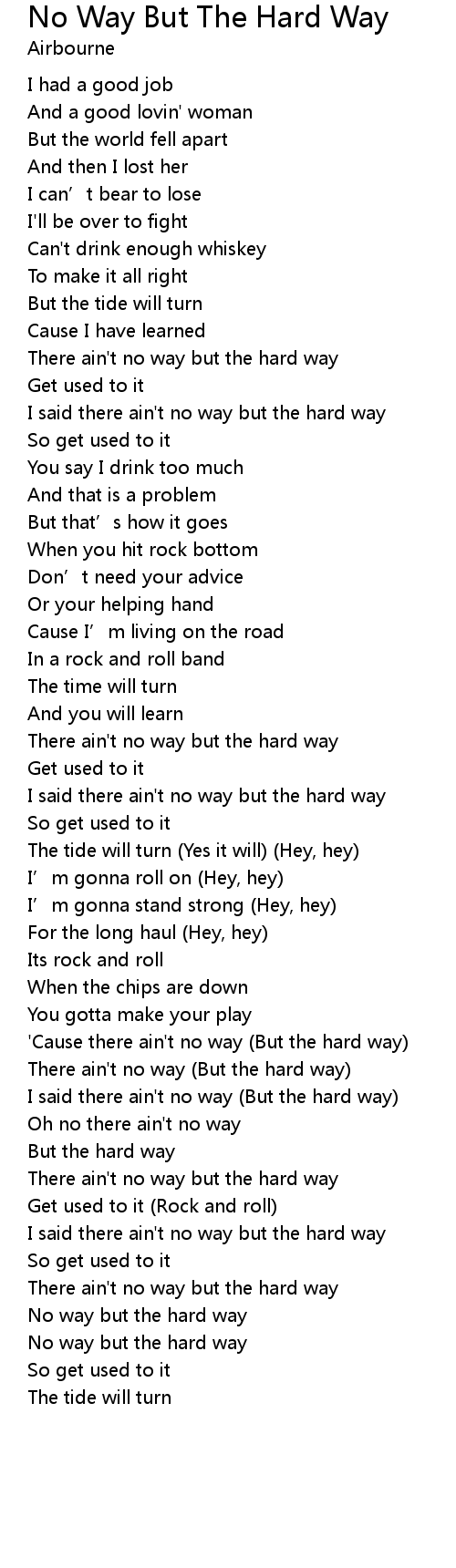 | ' Cause there ain' t no way But the hard way | |