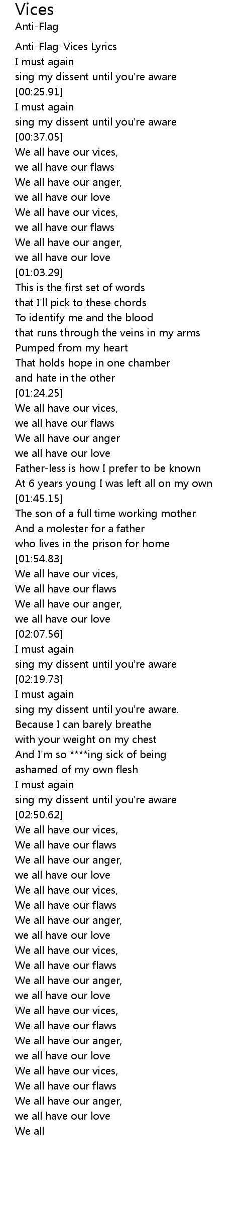Anti-Flag-Vices Lyrics |