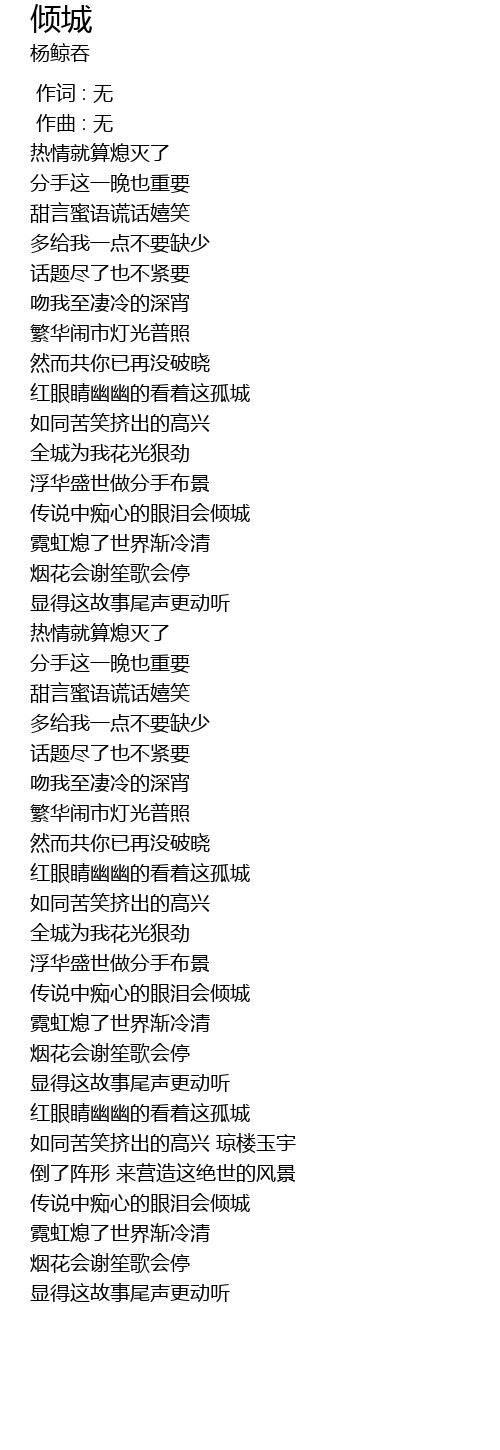 | [01:14.124] | 传说中痴心的眼泪会倾城 |