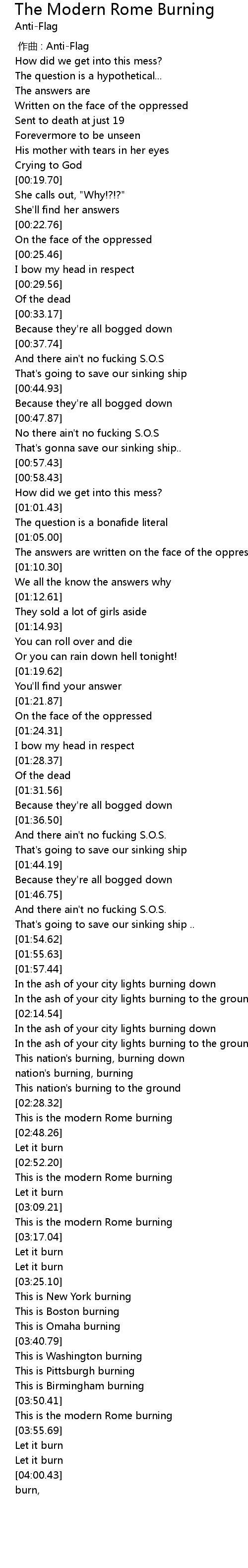| [00:00.00] | 作曲 : Anti-Flag |