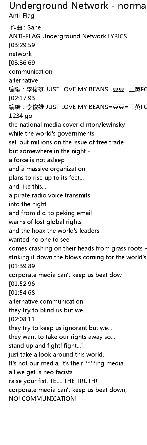 | [00:01.23] | ANTI-FLAG Underground Network LYRICS |
