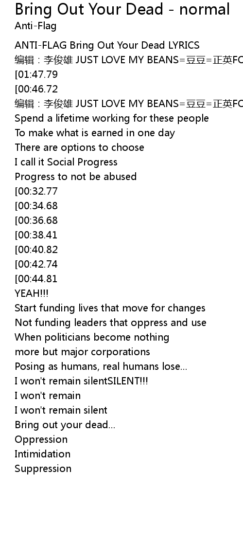 | [00:01.71] | ANTI-FLAG Bring Out Your Dead LYRICS |