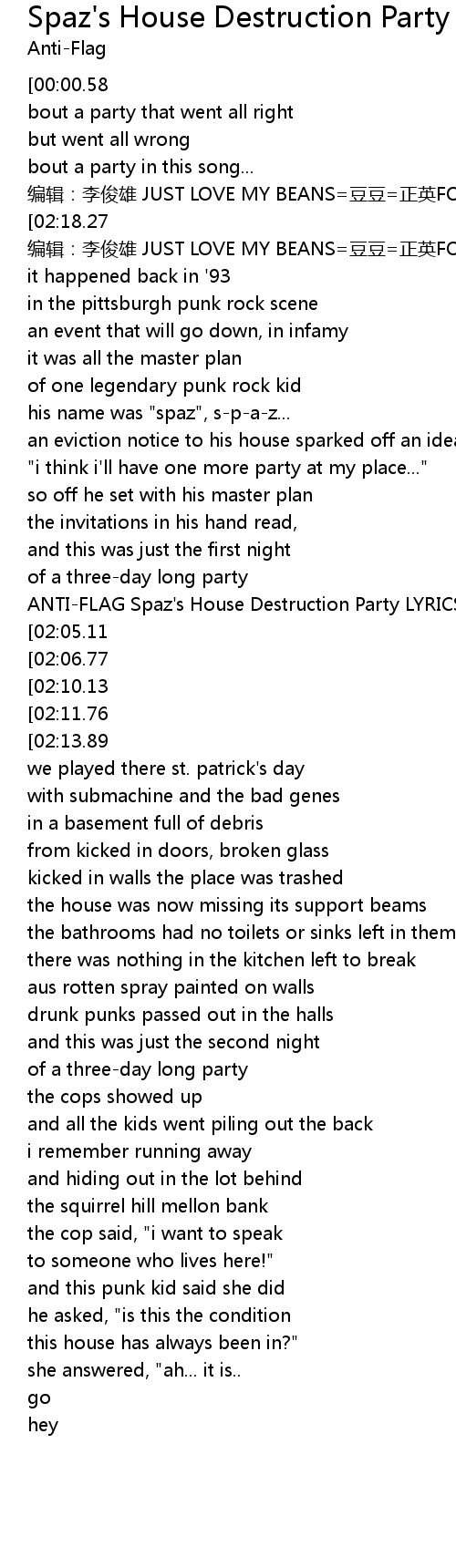 | [00:59.76] | ANTI-FLAG Spaz's House Destruction Party LYRICS |