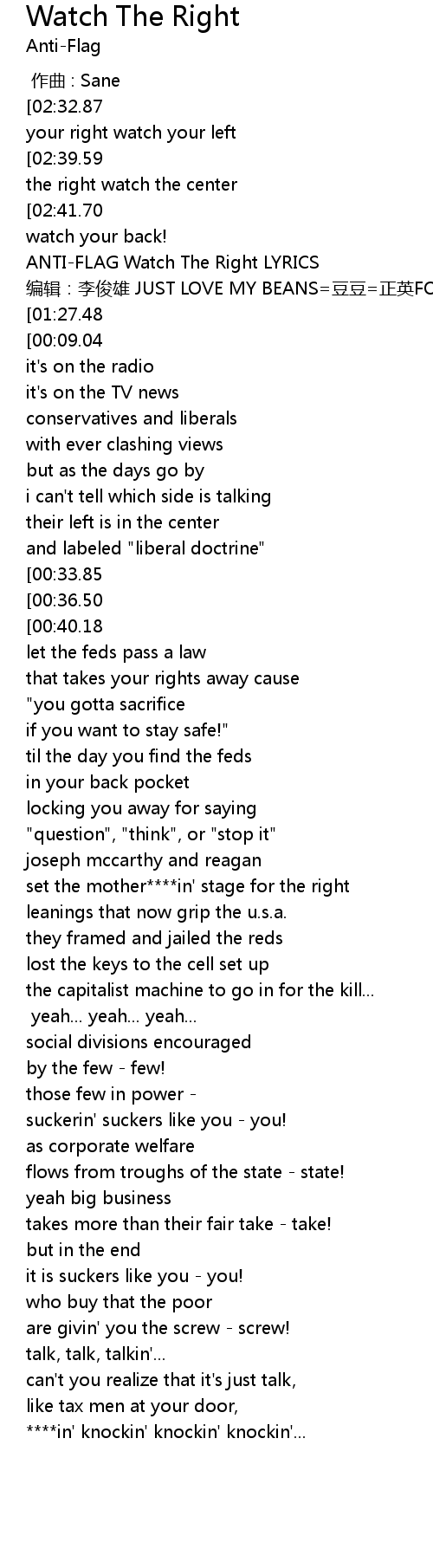 | [00:05.15] | ANTI-FLAG Watch The Right LYRICS |