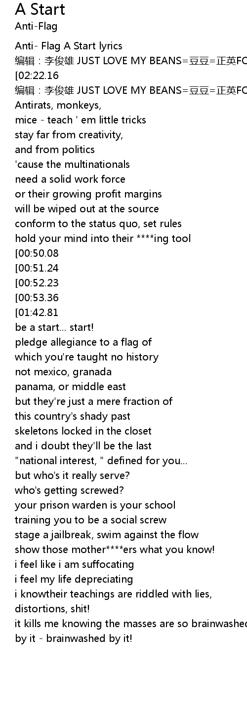 | [00:00.57] | Anti Flag A Start lyrics |