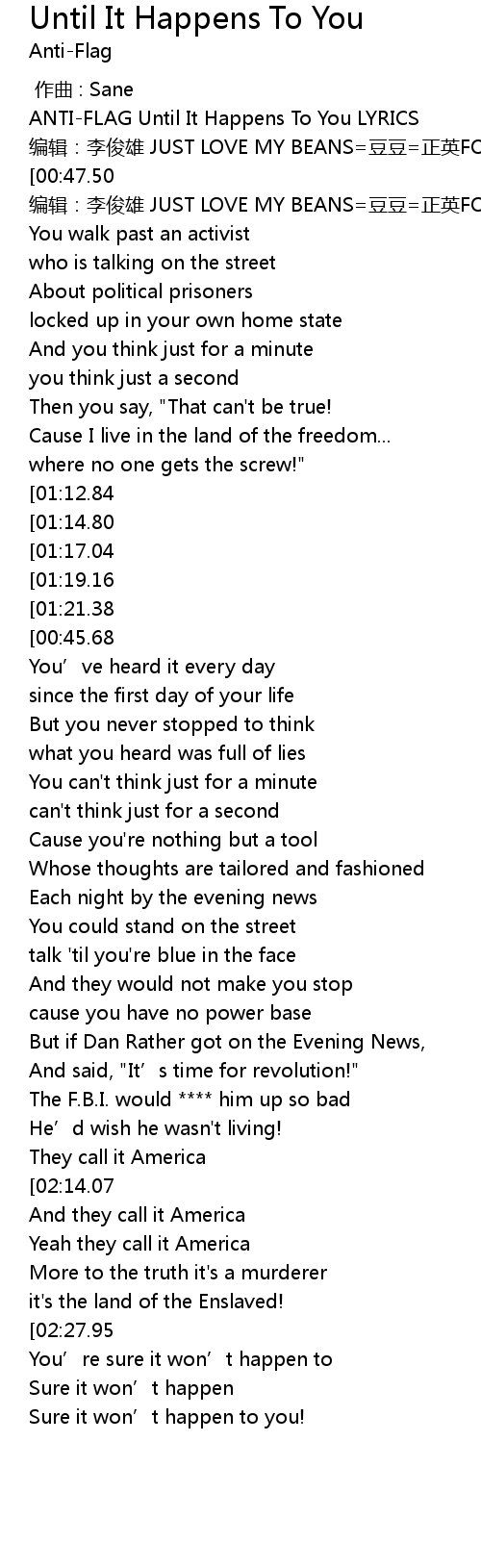 | [00:00.71] | ANTI-FLAG Until It Happens To You LYRICS |