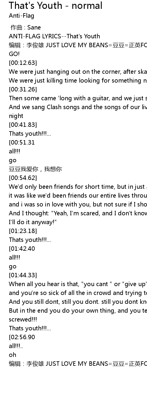| [00:02.50] | ANTI-FLAG LYRICS--That's Youth |