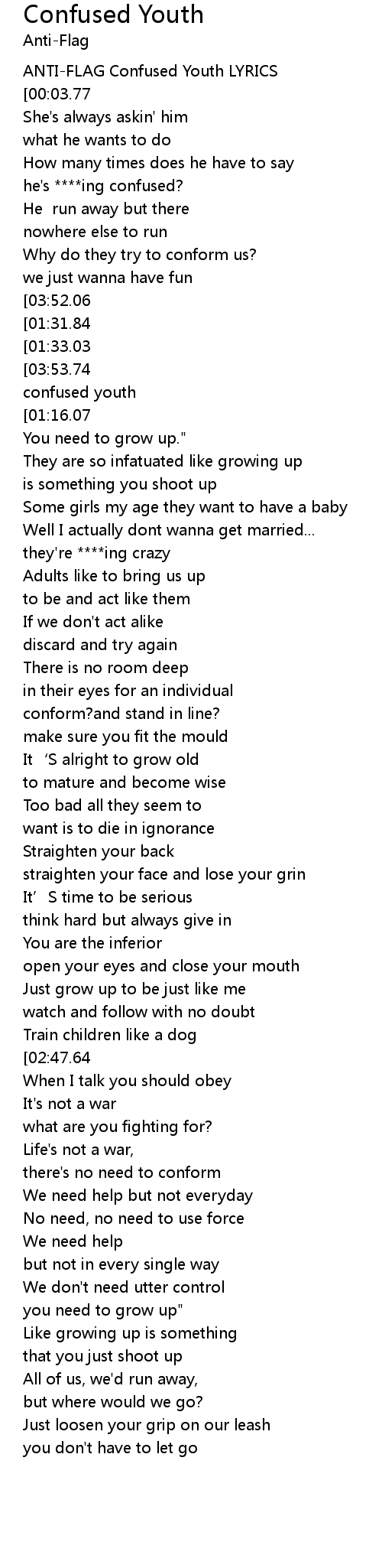 | [00:00.74] | ANTI-FLAG Confused Youth LYRICS |