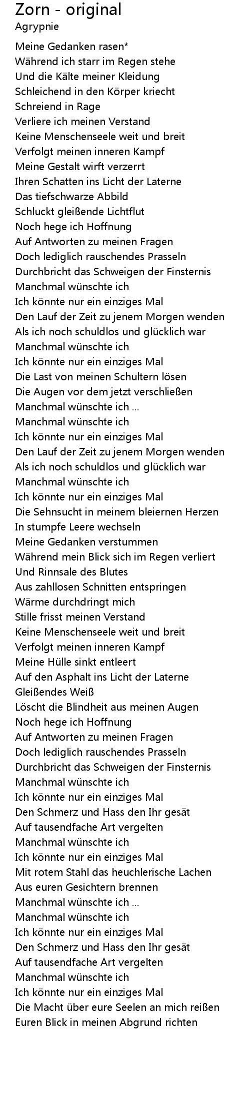 | Den Schmerz und Hass den Ihr ges t | |