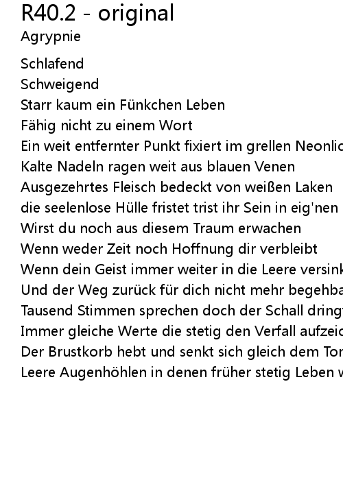| die seelenlose Hülle fristet trist ihr Sein in eig'nen Grenzen | |