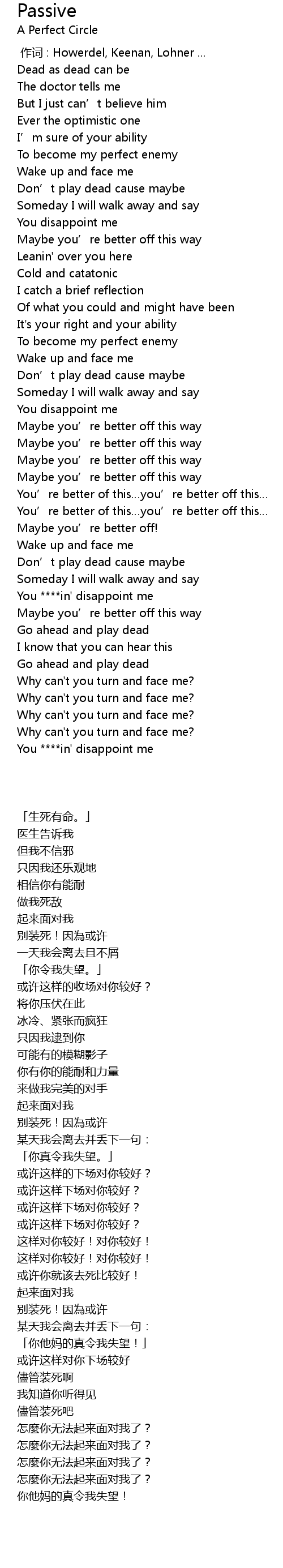 | [00:00.00] | zuò cí : Howerdel, Keenan, Lohner ... |