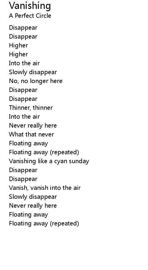 | Vanish, vanish into the air | |