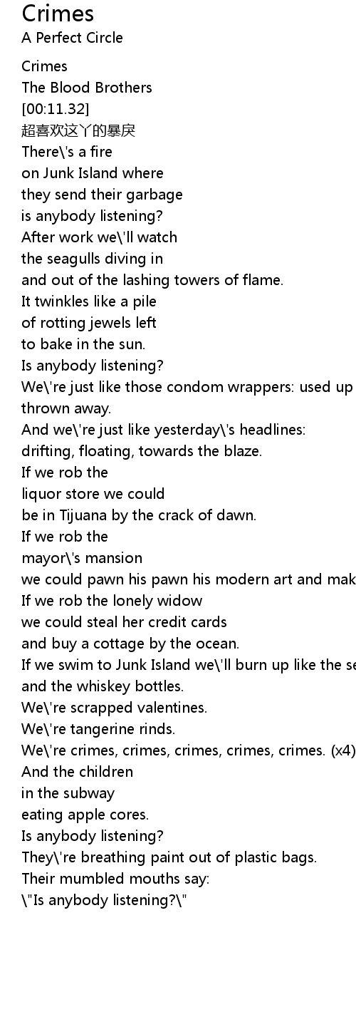 | [02:21.11] | We' re crimes, crimes, crimes, crimes, crimes. x4 |