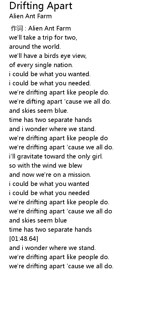| [00:36.54] | we' re difting apart ' cause we all do. |