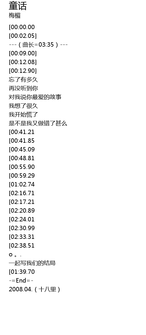 | [01:41.53][00:00.00] | 《童话》 - 王雅洁 |