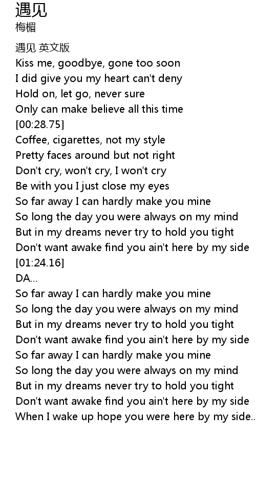 | [01:37.20] | So far away I can hardly make you mine |