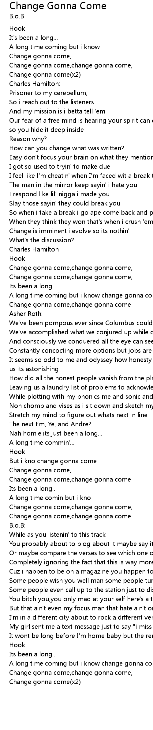 A long time coming but i know change gonna come, |