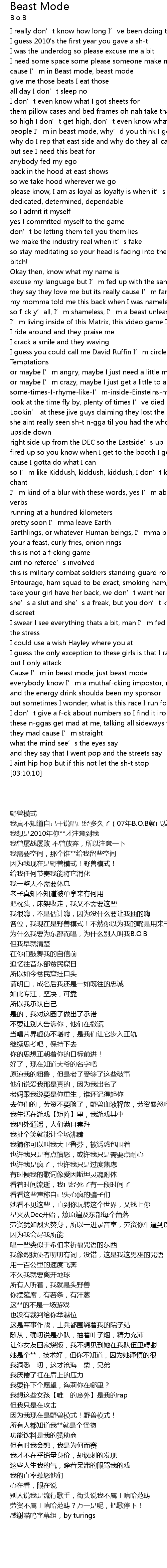 | [02:09.75] | Earthlings, or whatever Human beings, I' mma beast |