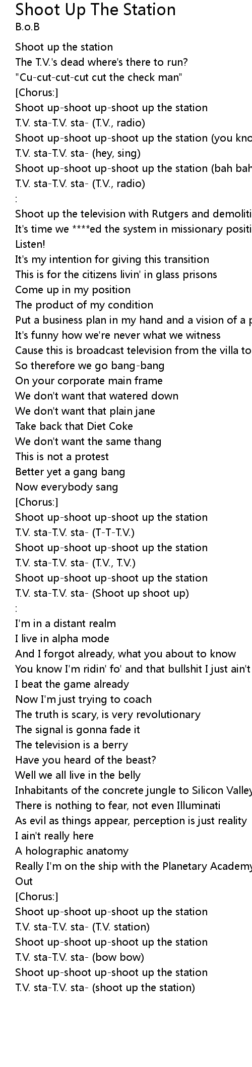 | Shoot up-shoot up-shoot up the station (you know) | |