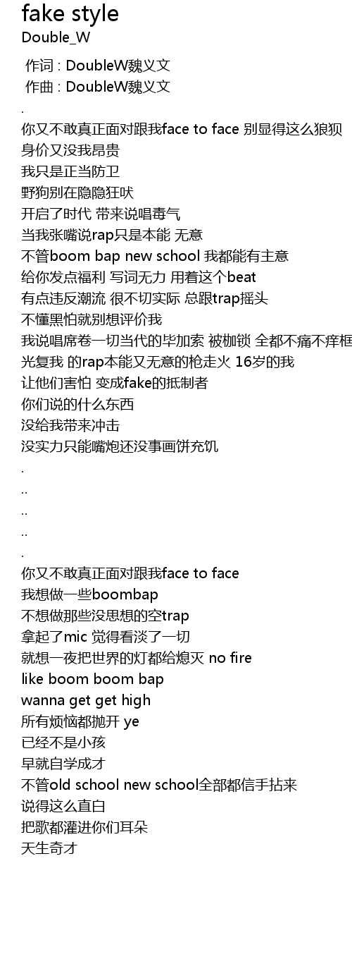 | [00:00.000] | 作词 : DoubleW魏义文 |