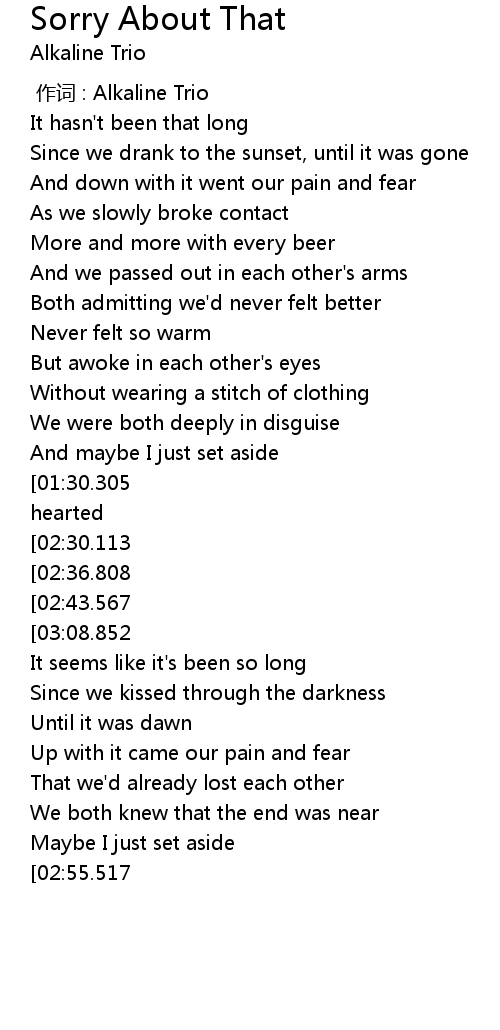 | [00:00.00] | zuò cí : Alkaline Trio |