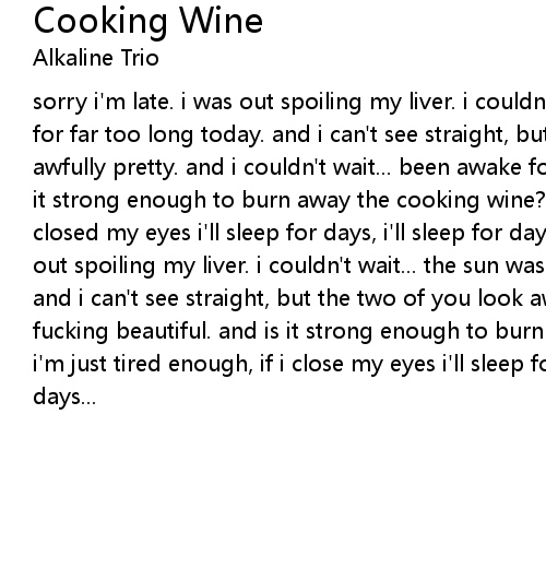 sorry i'm late. i was out spoiling my liver. i couldn't wait... the sun was up for far too long today. and i can't see straight, but the two of you look awfully pretty. and i couldn't wait... been awake for far too long today. and is it strong enough to burn away the cooking wine? and i'm just tired enough, if i closed my eyes i'll sleep for days, i'll sleep for days... sorry i'm late. i was out spoiling my liver. i couldn't wait... the sun was up for far too long today. and i can't see straight, but the two of you look awfully pretty... you're fucking beautiful. and is it strong enough to burn away the cooking wine? and i'm just tired enough, if i close my eyes i'll sleep for days, i'll sleep for days... |
