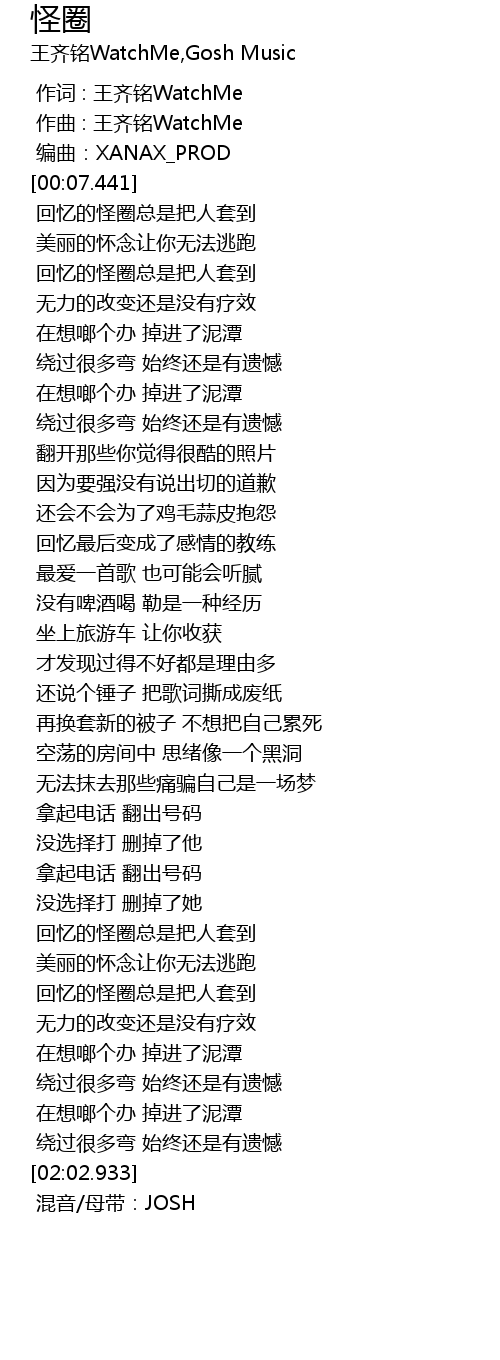 | [00:01.000] | 作曲 : 王齐铭WatchMe |