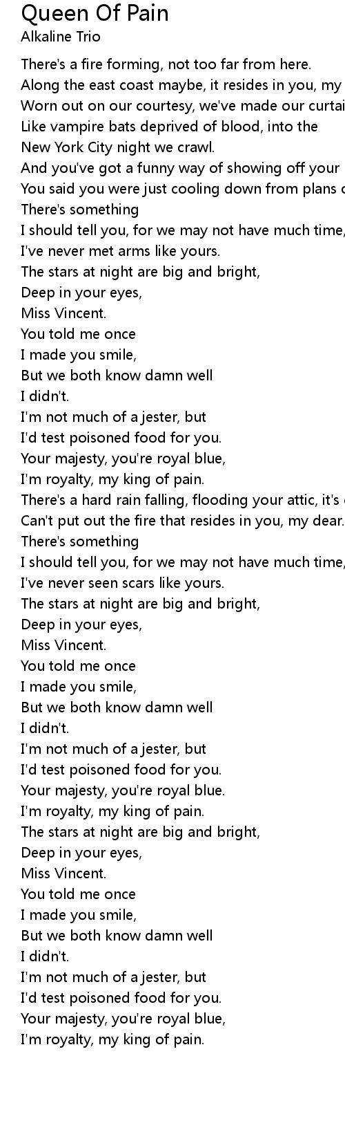 I'm royalty, my king of pain. |