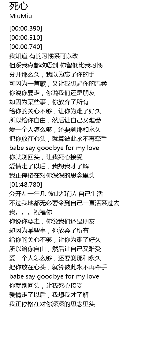 | [02:54.810] | ni jiu bie hui tou, rang wo si xin jie shou |