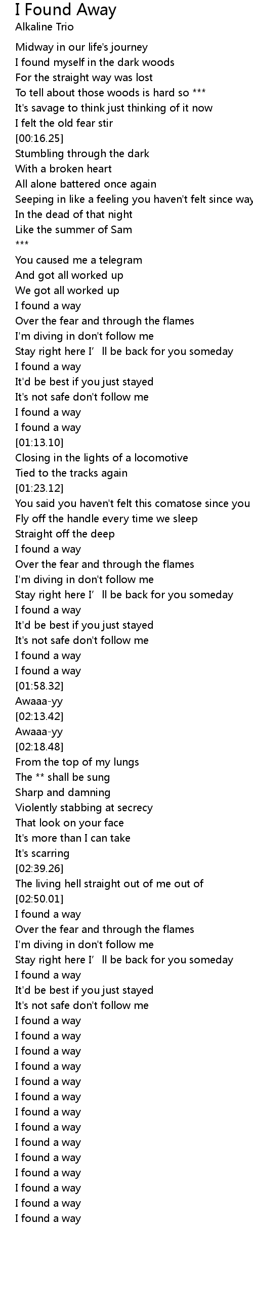 | [01:00.25] | I found a way |
