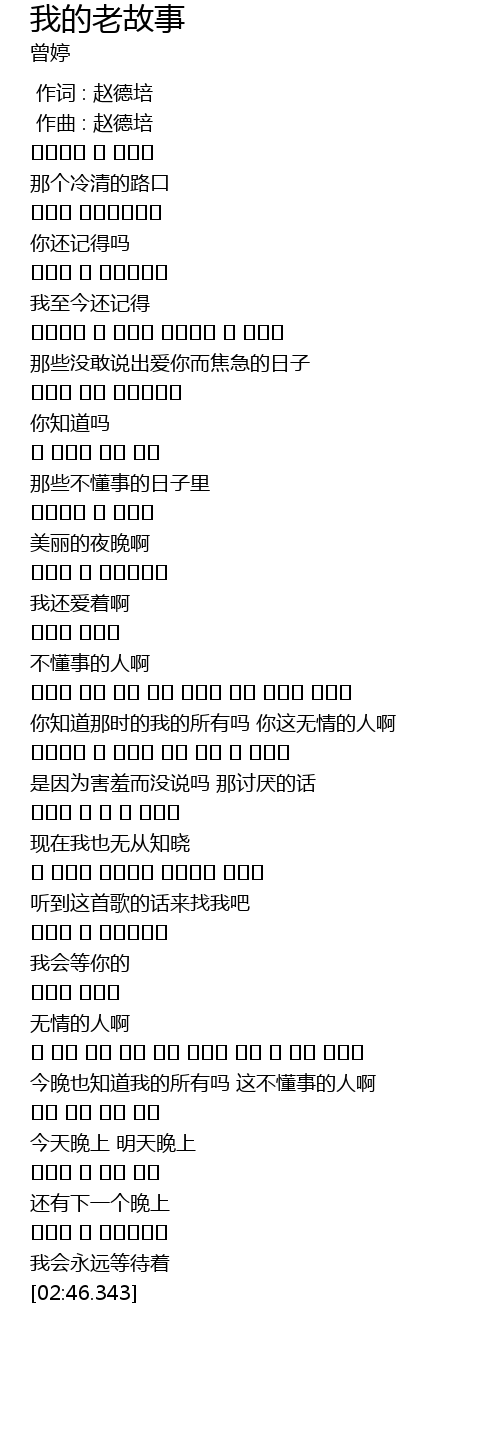 | [02:25.579] | 今晚也知道我的所有吗 这不懂事的人啊 |