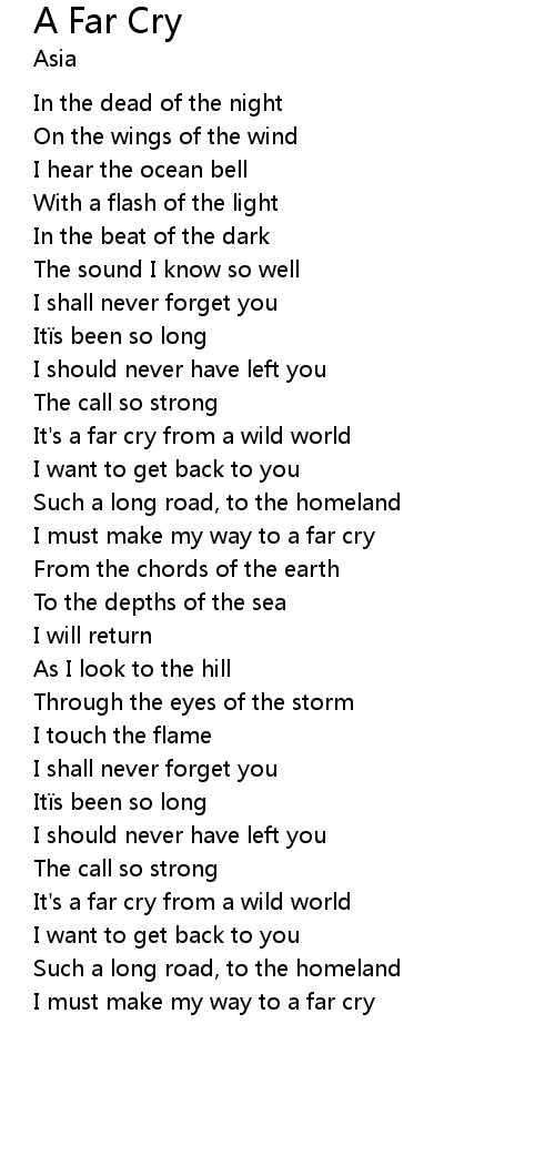 | I must make my way to a far cry |