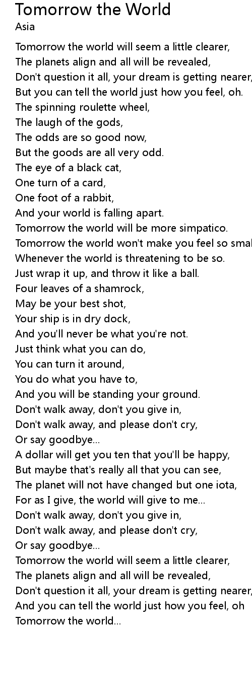 | Tomorrow the world won't make you feel so small. | |