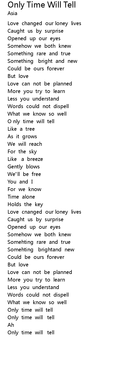 | [01:16.44] | O nly time will tell |