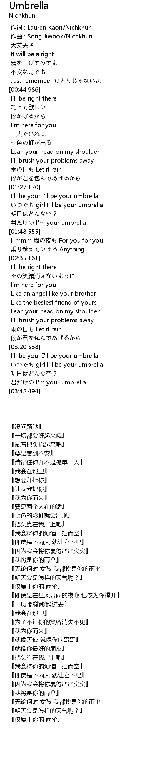 | [01:42.751] | jūn I' m your umbrella |