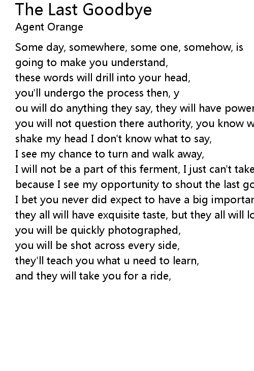 because I see my opportunity to shout the last goodbye, |