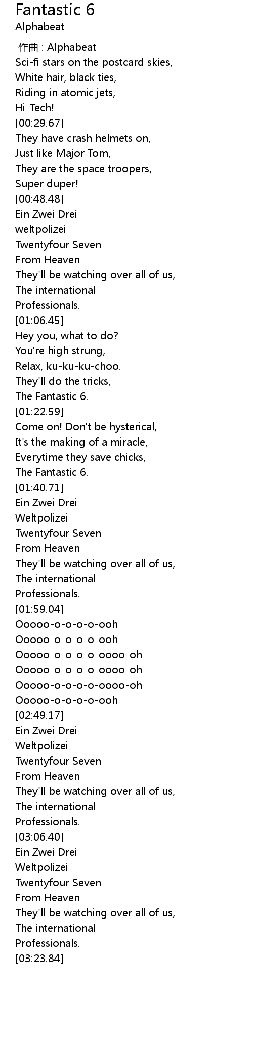 | [01:20.93] | The Fantastic 6. |